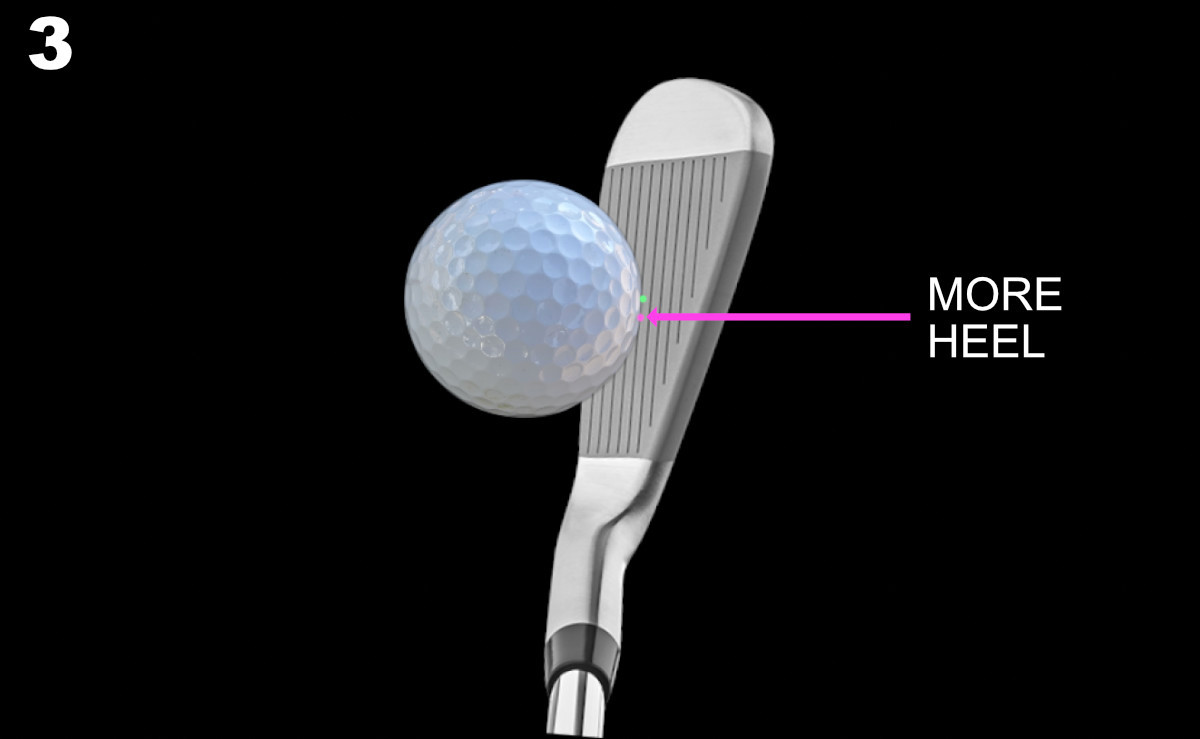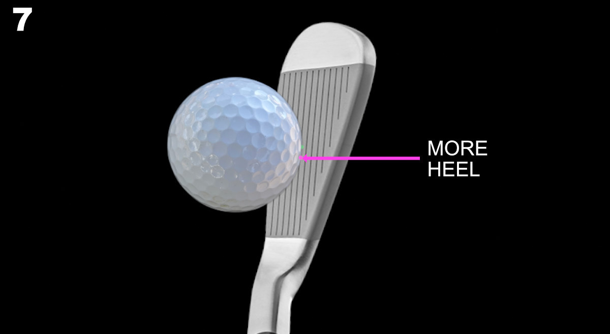 If, all else being equal, we presented the face more OPEN, the strike moves more towards the HEEL.
