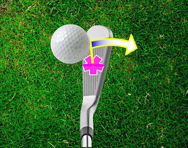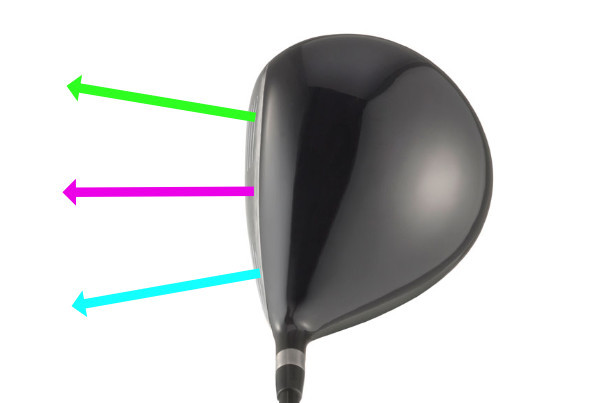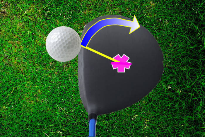 The point of contact on the face (POC) will move almost straight back, with the face acting like a saloon door. As the POC is pretty level with the club center of mass (COM)
