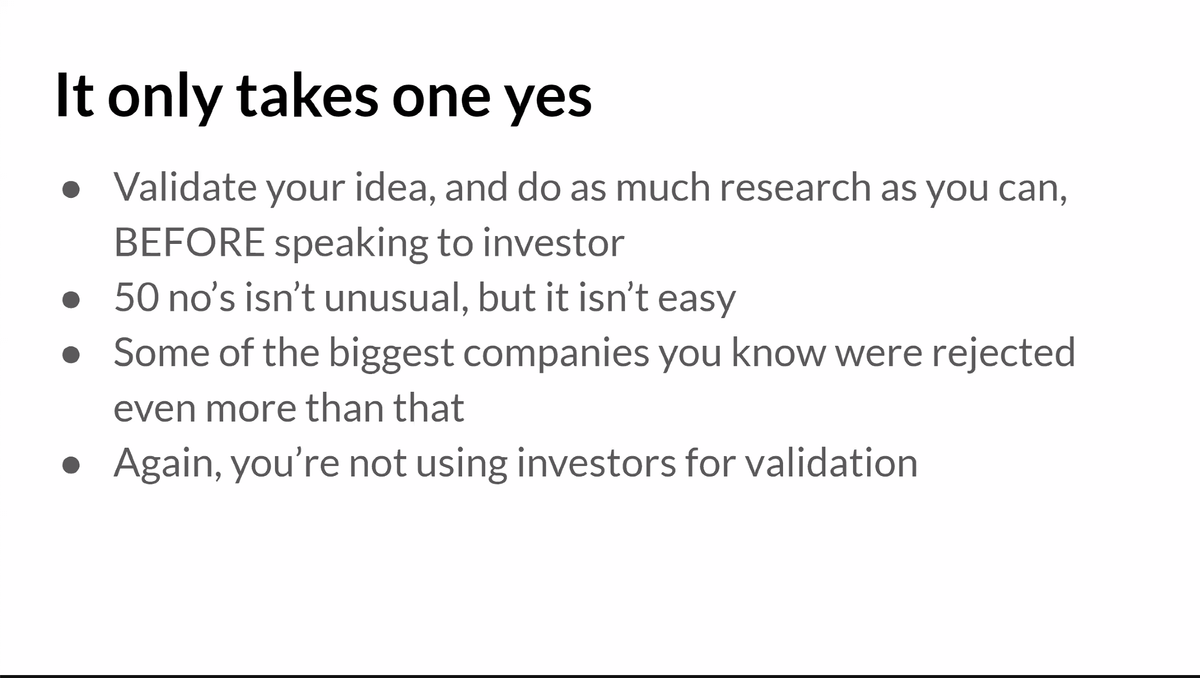 she asked why not - they said she had no experience running a company, no prototype... too risky