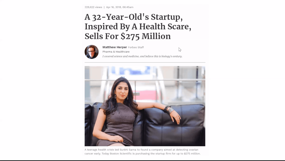 she studied science and engineering at uc berkeley and worked at companies with the objective of learning about ovarian cancer and why it's so hard to diagnose