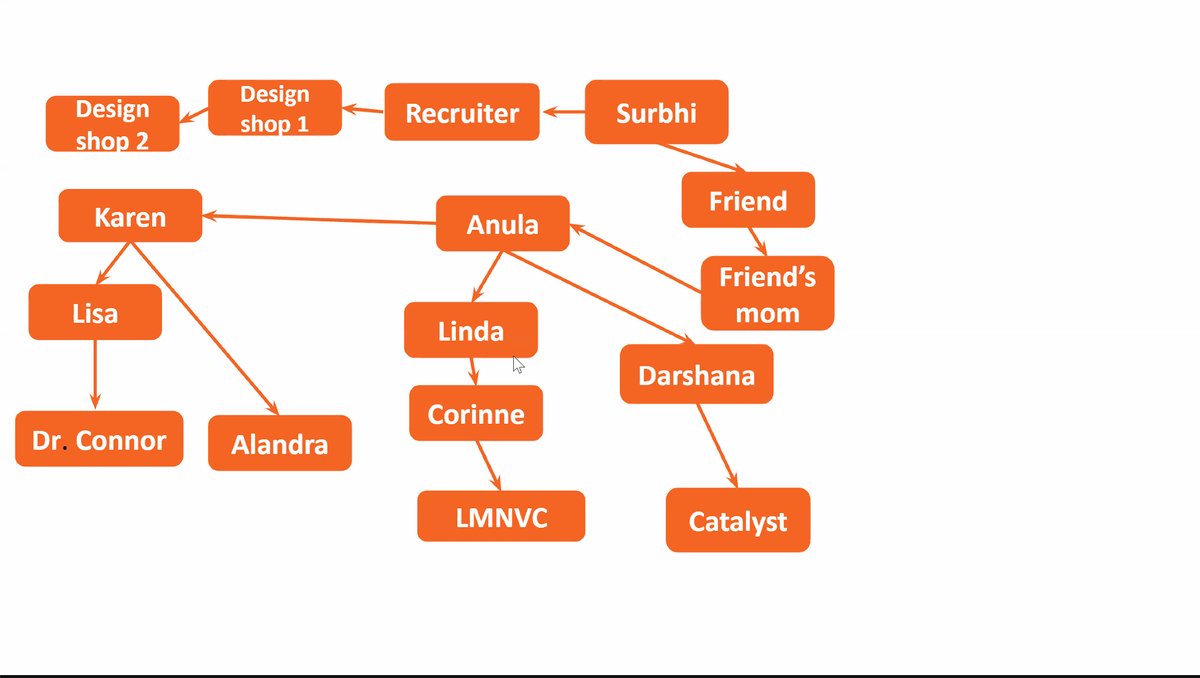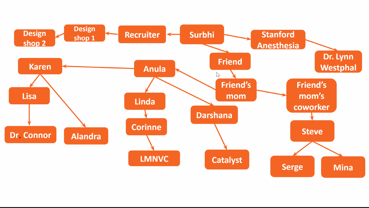 when she was looking for a business advisor, she thought back to her high school friend's dad. it didn't go anywhere BUT the mom took interest. she introduces someone doing clinical trials in India!