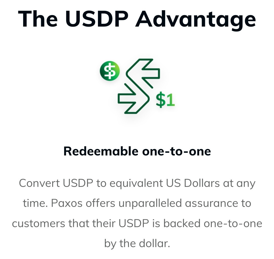 you can mint 1 $USDP by giving @PaxosGlobal (company that issues $USDP) 1$. Also you can claim real 1$ for your $USDP at any time you need, by burning your $USDP