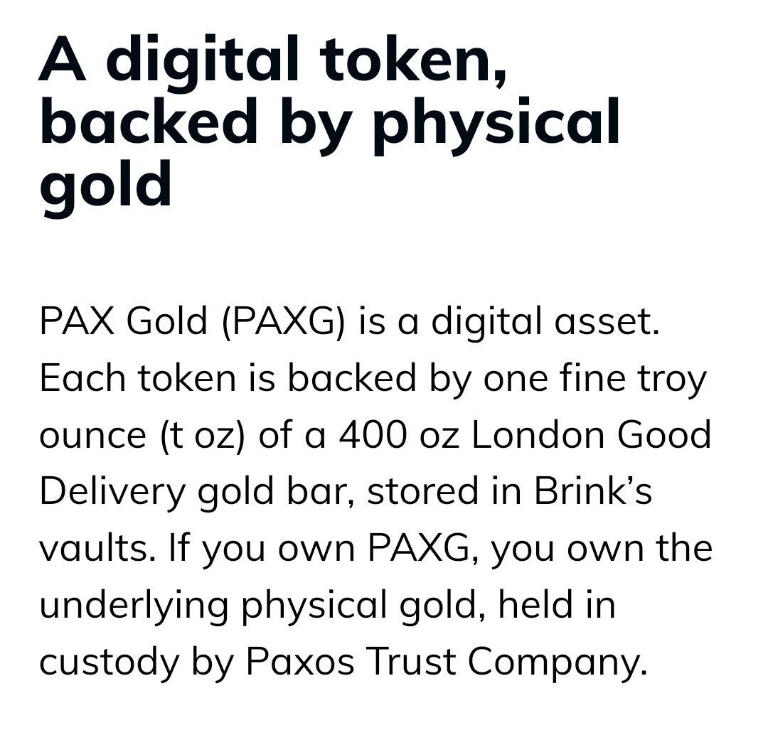 - $PAXG (Paxos gold) which is backed by real gold. So, you can consider buying $PAXG like buying digital gold.