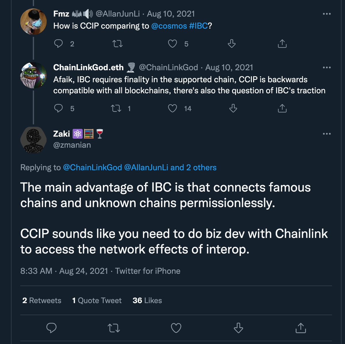 Let's have a convo on @chainlink CCIP vs @cosmos IBC