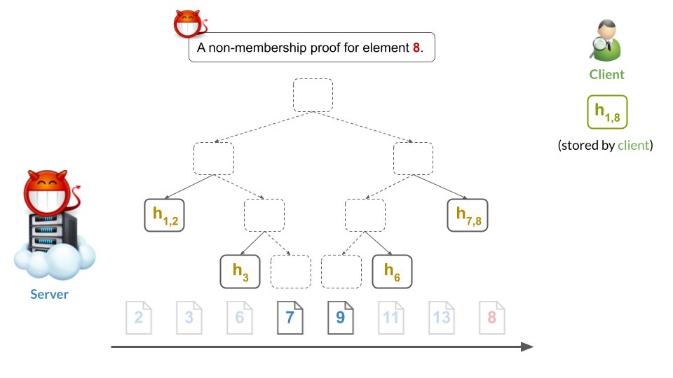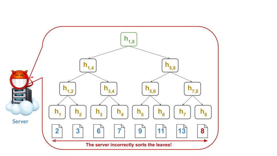 Such mis-ordering completely breaks security: a malicious server can prove that element 8 *is NOT in* the tree while *at the same time* also proving that 8 *is in* the tree. This makes any Merkle proof meaningless to any client.