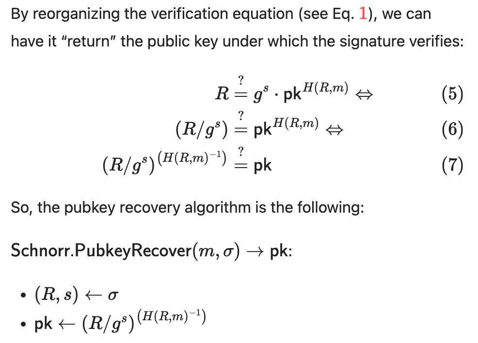 In fact, Schnorr's pubkey recovery is better than ECDSA's: no need for recovery IDs!