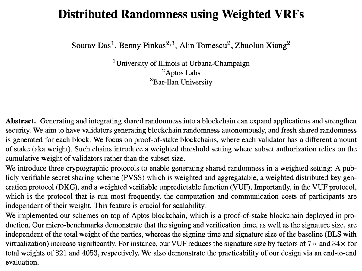 Continuing the tweet hurricane 🌀 on the challenges of taking @aptos on-chain randomness from idea ✅ , to *academic paper* 📜, to production-ready implementation and, finally, to deployment (twitter.com/alinush407/status/1770797569947337099).