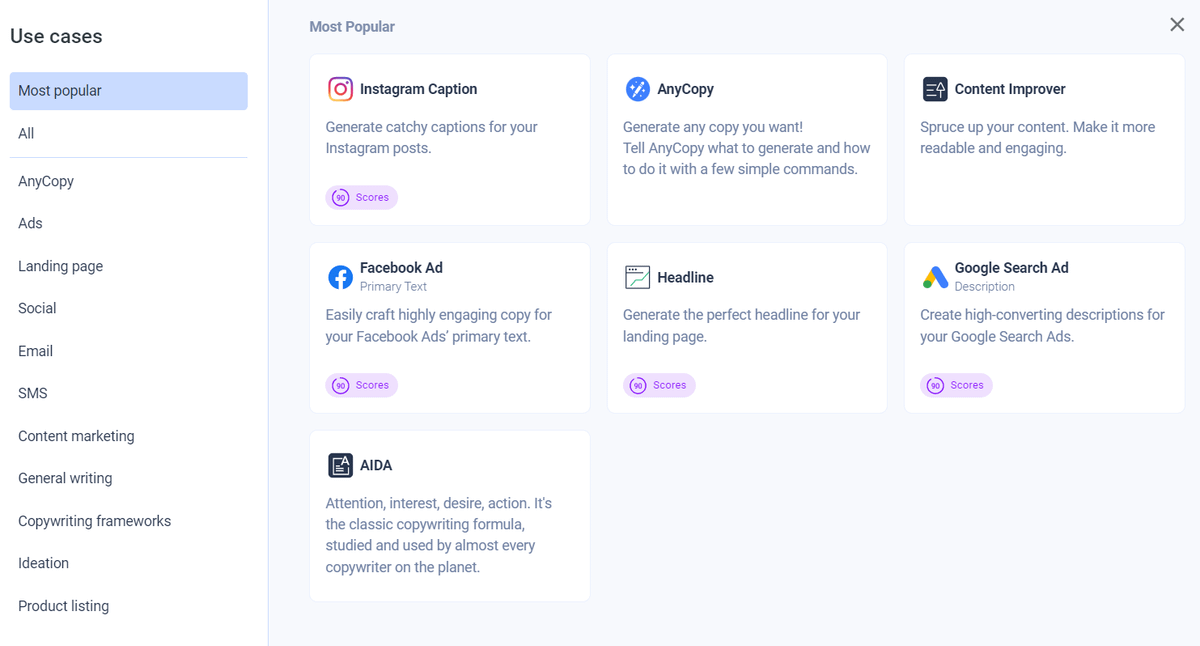 You can try Anyword for free! Under the free plan you get 1,000-word credits per month, 100+ AI writing tools, 200+ Data-driven copywriting tools & Blog post wizard.