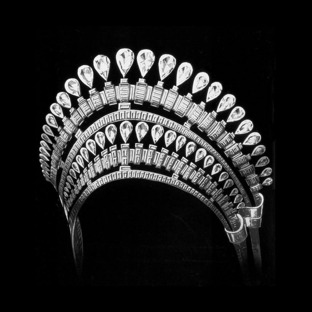 In 1939, Queen Nazli of Egypt commissioned a set of diamond jewelry to celebrate the wedding of her daughter, Princess Fawzia of Egypt, to the Shah of Iran.