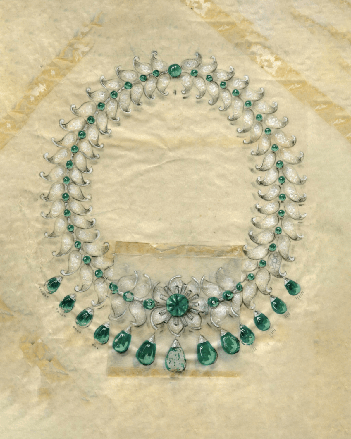 In 1950, Maharani of Baroda (of India) placed a special order for a necklace consisting of 220 carats of emeralds.