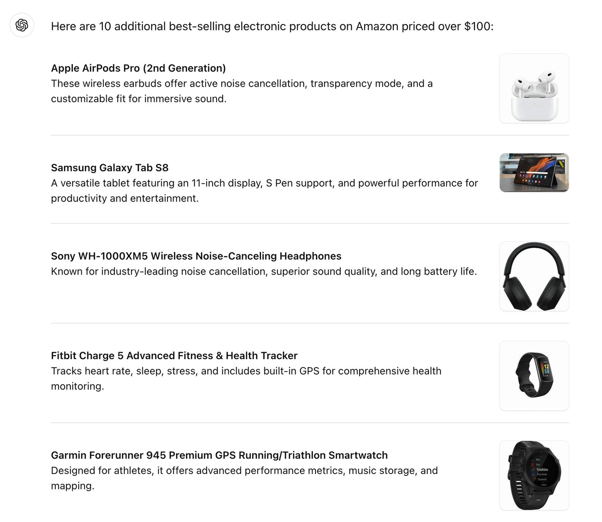 โList 10 best-selling electronic products on Amazon priced over $100.โ