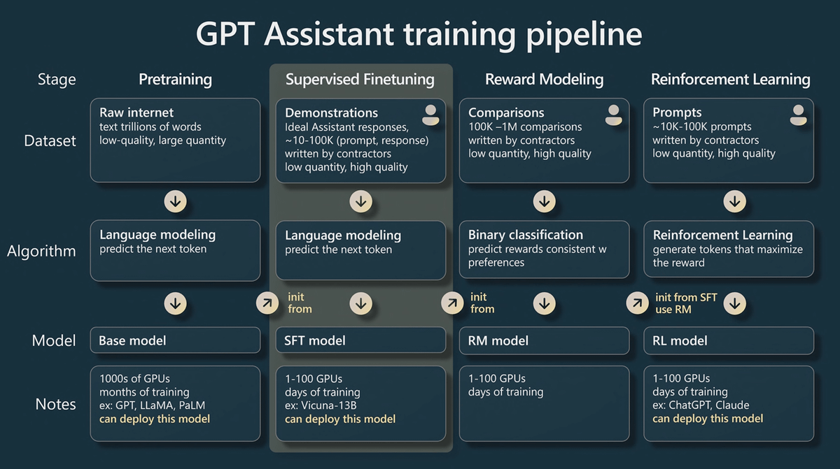 And continue training the model with a swapped dataset now and we get the SFT (supervised finetuning) model.