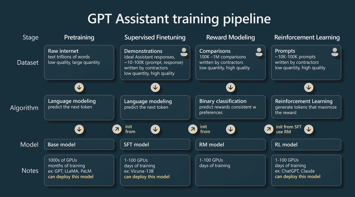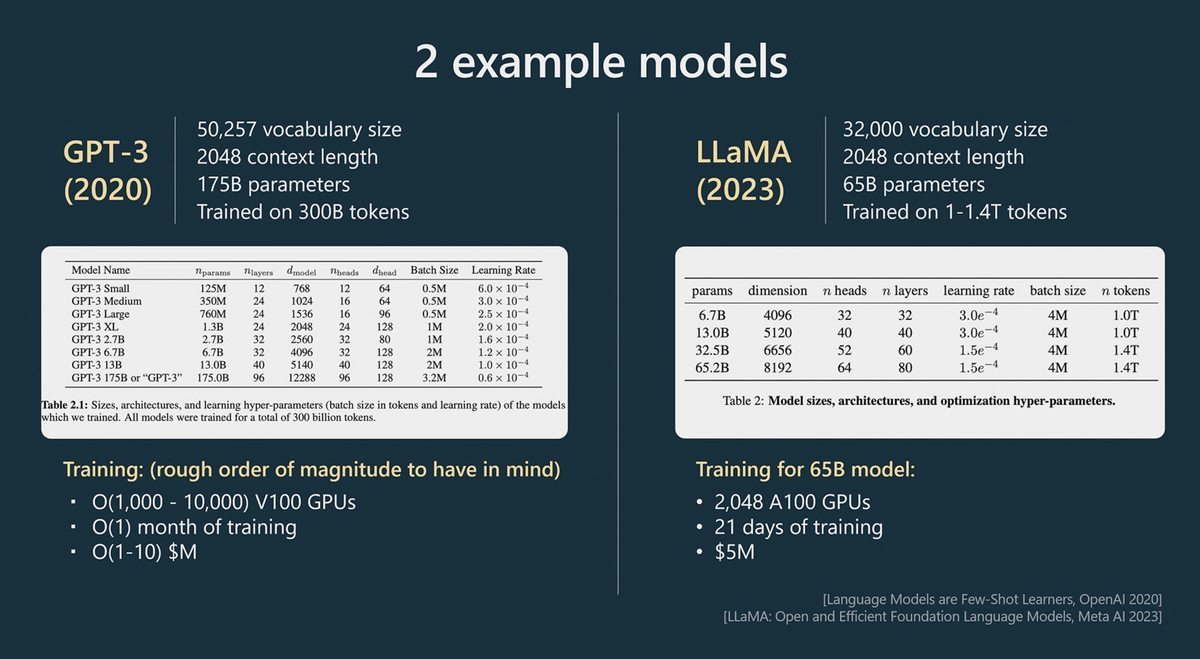 Andrej repeats this several times, the best open source model to learn from right now is probably LLaMa from @MetaAI (since OAI didn't release anything about GPT-4)