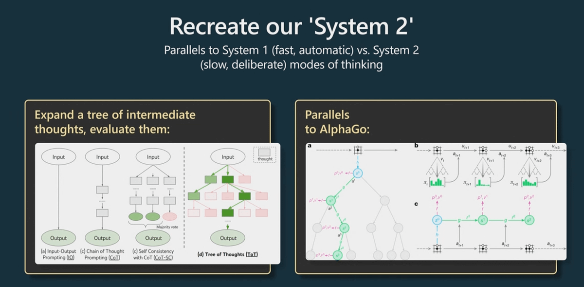 These techniques like CoT, Self Reflexion and the recently released Tree of thought are our attempt to build system 2, the slower, more deliberate thinking