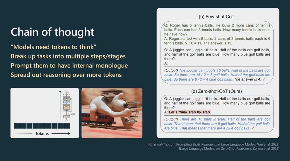 Methods like Chain of thought provide models with "more tokens" or "more time to think" by asking "let's think step by step"