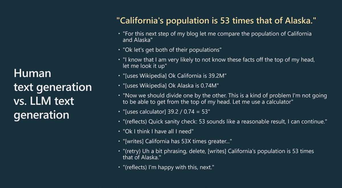 Andrej then goes fairly in depth into the difference between a human being process of writing a statement like