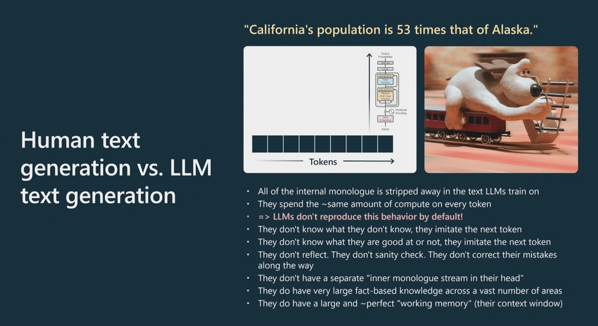 I love it, Andrej uses the Thinking Fast and Slow - system 1 and system 2 models of our thinking to LLMs.