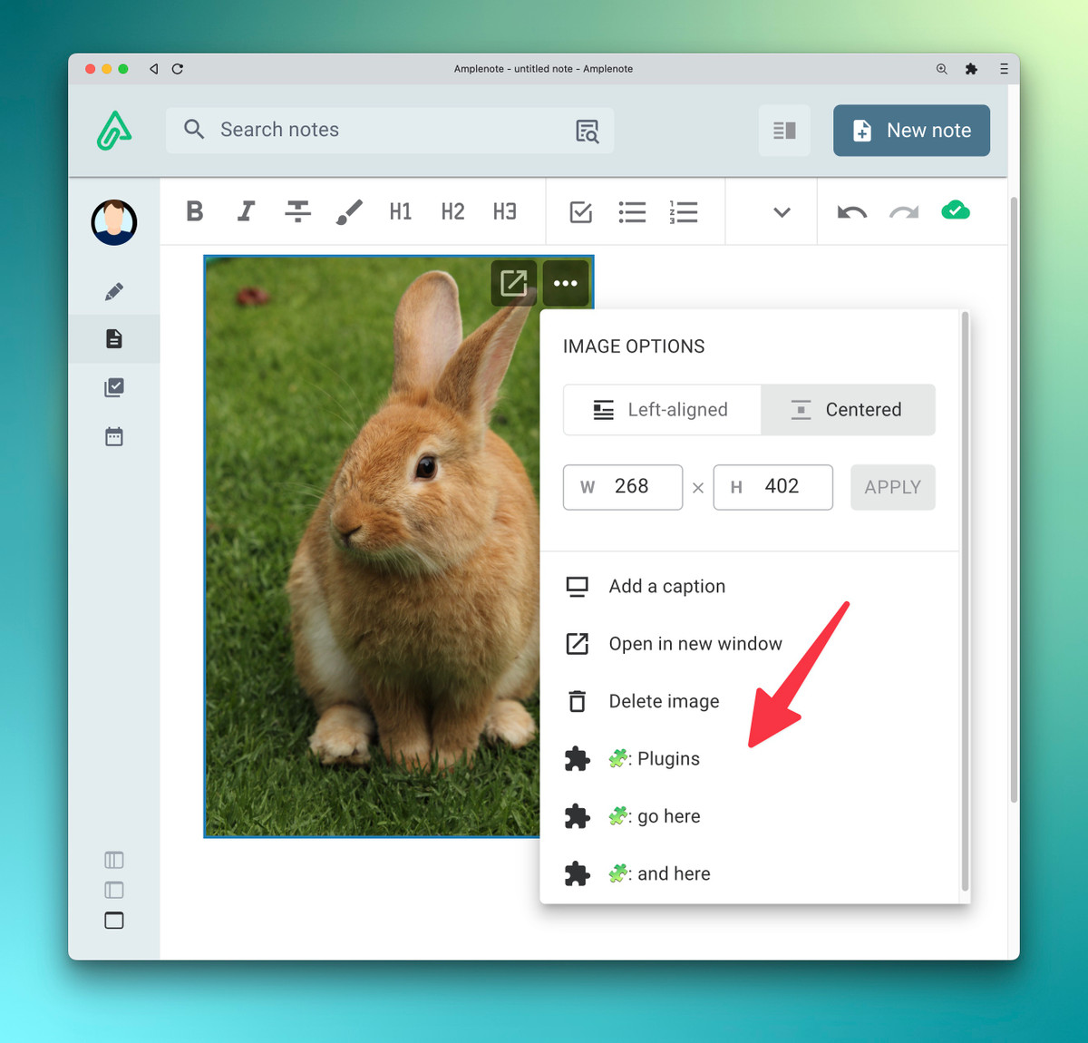 🧩 This week's best Plugin improvements: - Trigger plugins from the Image Options menu and operate on image properties; - Add boolean Checks to determine whether an Action will be displayed or not; - Fuzzy search for notes using the new "query" parameter.