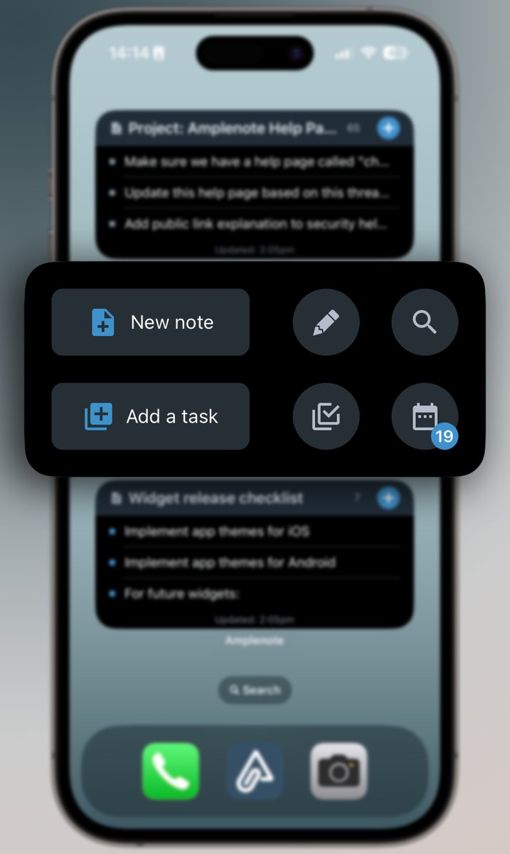 🚀 Newest widget type is now live on Android and iOS! Use the Quick Actions widget to: 1. Jump to Jots, Notes or Calendar Mode; 2. Create a new note or a new task; 3. Bring up the Quick Open search bar to browse through existing notes & tasks.