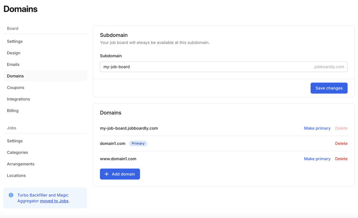 Establish your brand with a custom domain! Job Boardly makes setup easy so you can launch with a professional touch.