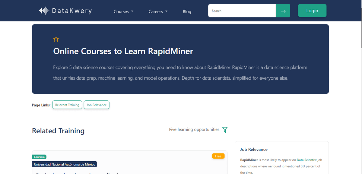 8. Rapidminer Job relevance: 1. Data Scientist: 0.3% 2. Data Architect: 0.2% 3. Data Analyst: 0.1% CC: