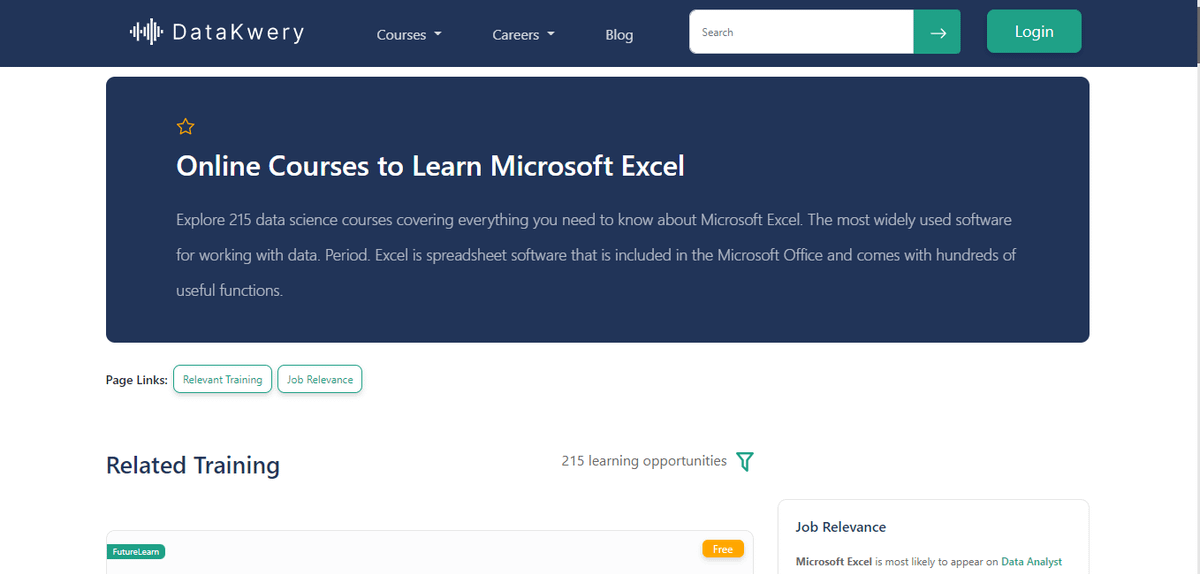1. MS Excel Job relevance: 1. Data Analyst: 40.4% 2. Business Analyst: 31.0% 3. Data Scientist: 8.0% CC: