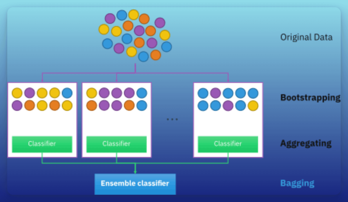 Bagging also known as Bootstrap aggregation, builds multiple models on a subset of train data and aggregates the predictions to derive the final prediction for a given instance.
