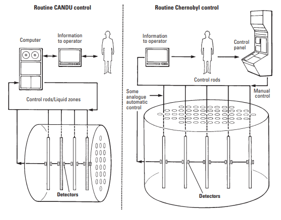 1. Lacking instrumentation and control meant that the operating crew rarely ever had an adequate situational awareness since they were busy w/ monotonous jobs. The automation was already low level for 1986, the Soviet Union was sanctioned through CoCom and was behind in all ICT.