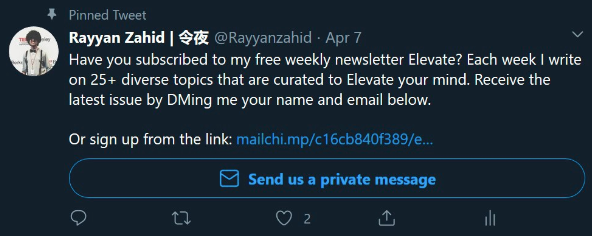 The founder of Findymail, @valentin_wln takes an interesting approach. He separates his main tweet body from his CTA.