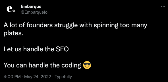 First, a pain point. Founders do have a lot on their plate, and many struggle to find the time to do marketing and SEO.