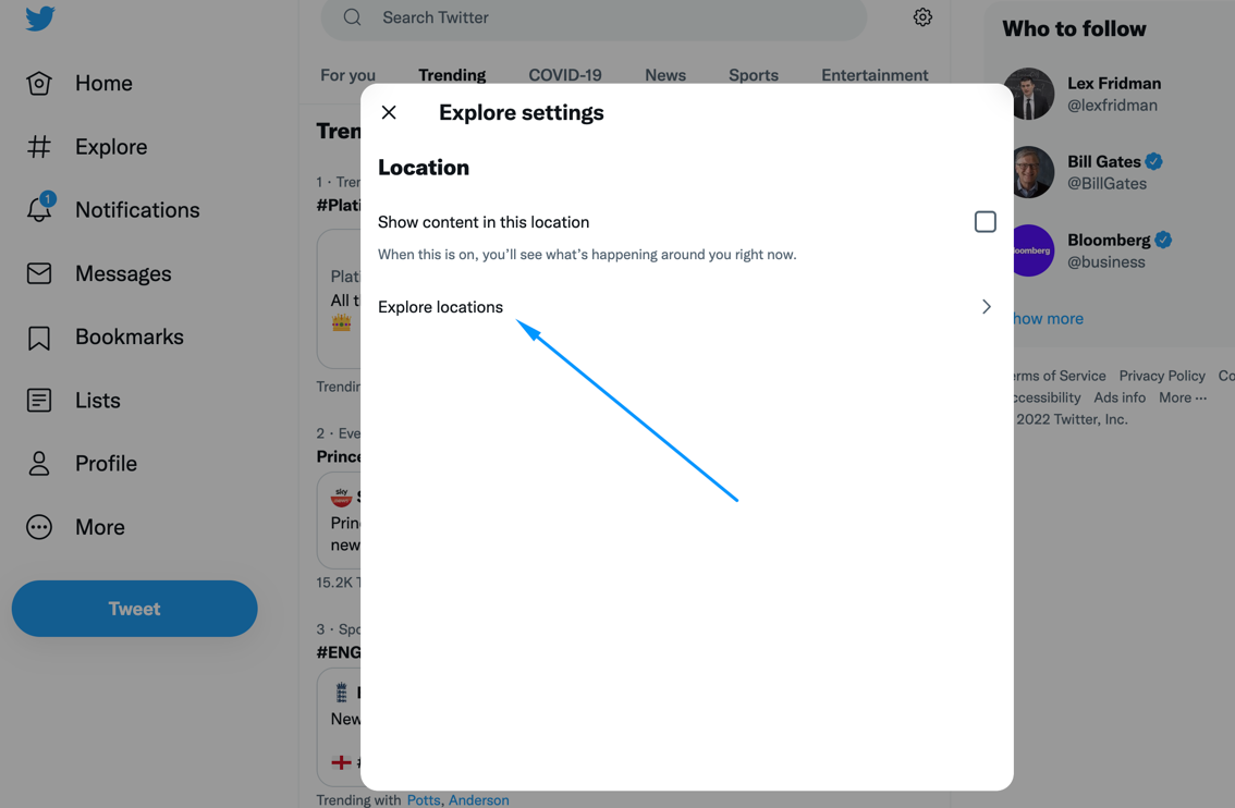 To explore worldwide trends on your PC and see the Twitter threads generating conversations, log into your Twitter account from your PC browser. Once you sign in, follow the steps below to start seeing worldwide trends.