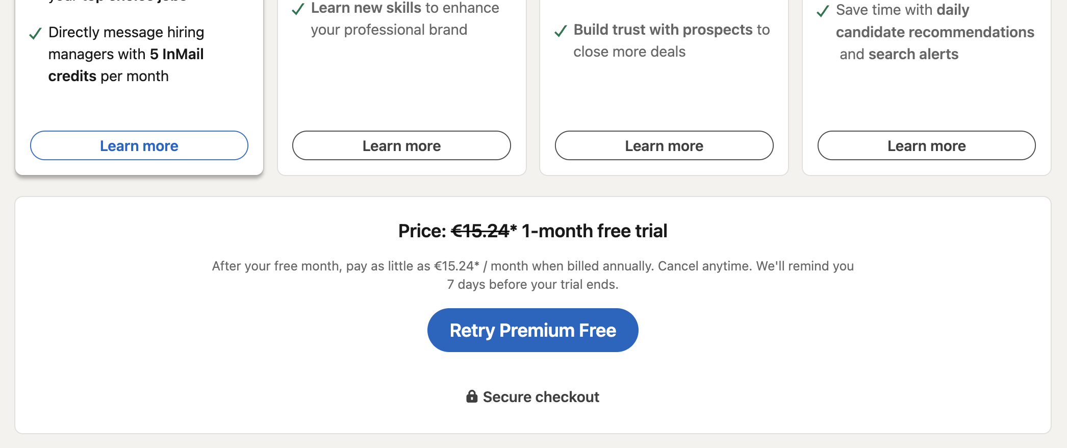 At the time of writing, LinkedIn Premium tiers are priced as follows: