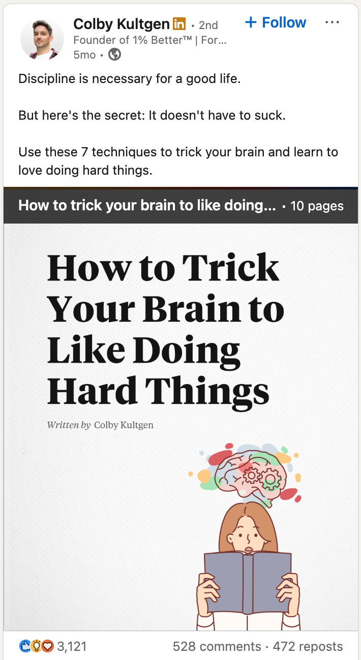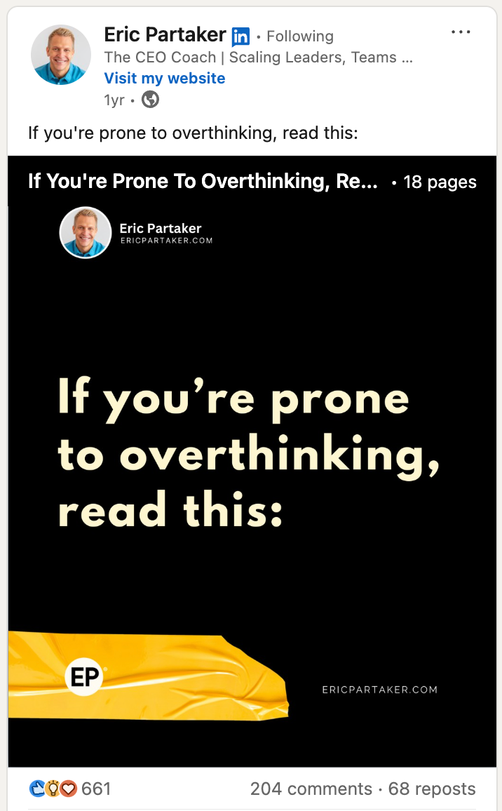 Creating an eye-catching LinkedIn carousel requires a balance between aesthetics and information delivery. If you don't have a designer for these, there are great tools out there create them.