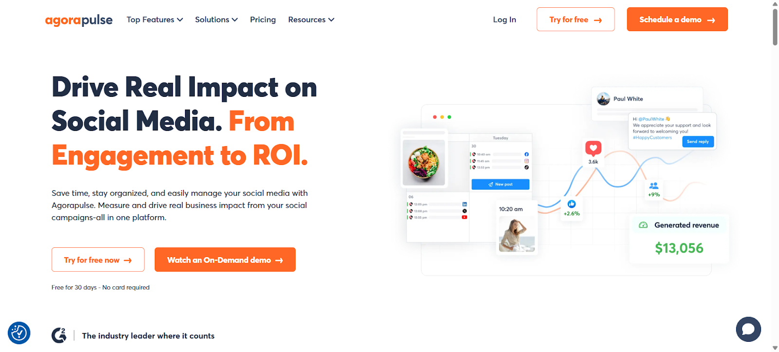 Agorapulse provides scheduling, monitoring, and reporting features for multiple platforms. It includes a unified inbox to manage messages and mentions, but its LinkedIn post creation options are somewhat restricted.