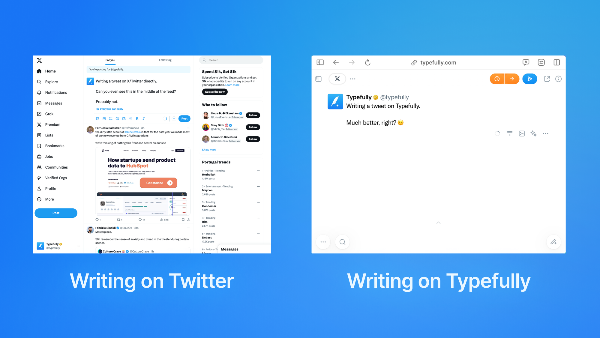 Thousands of X/Twitter creators and business accounts use Typefully to schedule tweets faster and more easily.