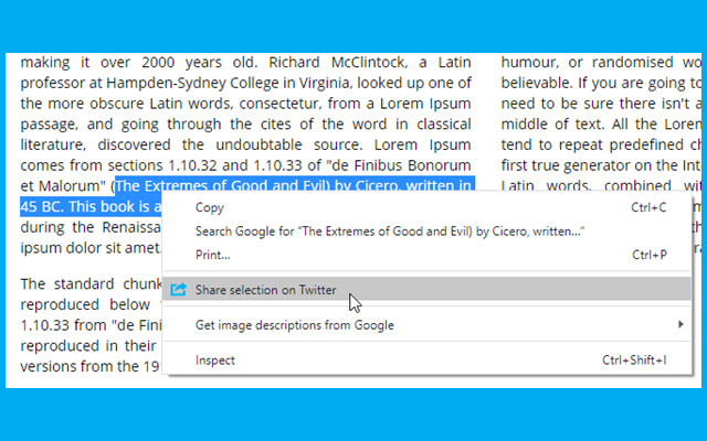 Share On Twitter is a Chrome and Mozilla Firefox extension that lets you share the selected text, webpages, or links of your choosing. You can do this by clicking on the ad-on in the toolbar. This tool also enables you to embed tweets from another webpage.