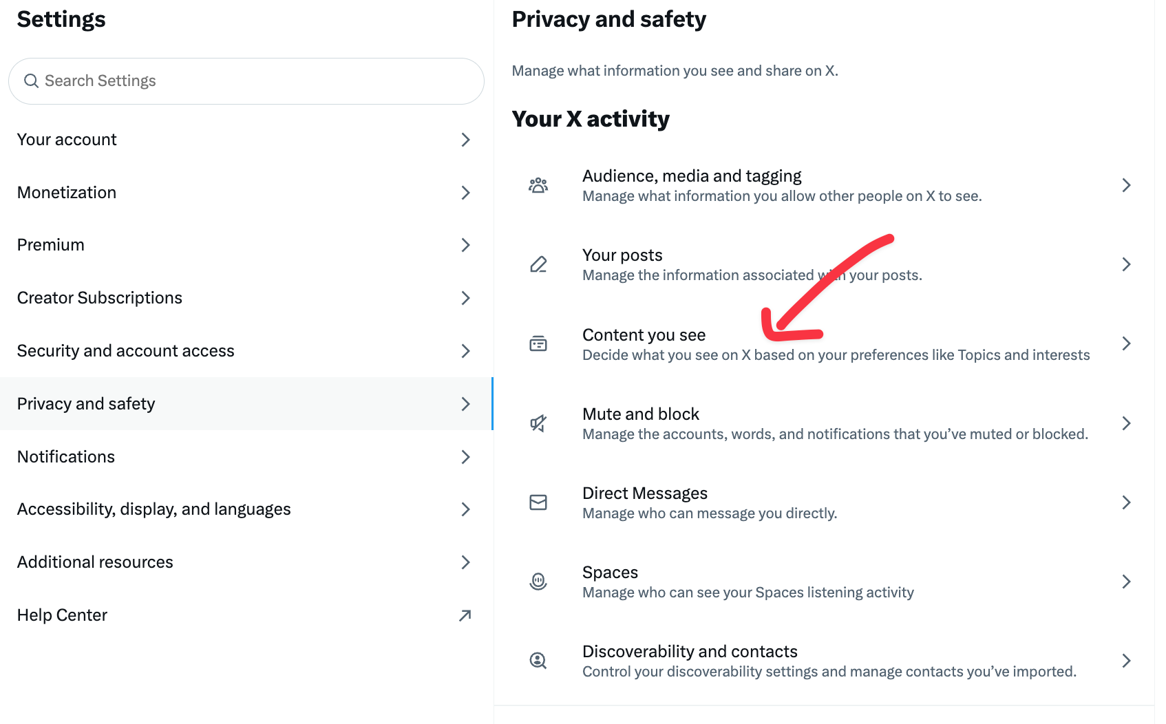 5) Select "Content you see"