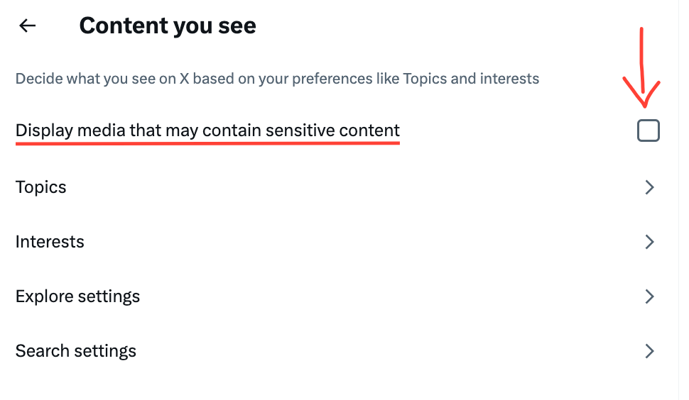 6) Check the box next to "Display media that may contain sensitive content"