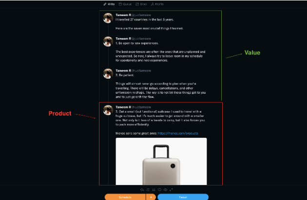 When it comes to promoting products on Twitter, it's important that you don't just make a tweet that looks like an ad. That's a surefire way to get less engagement and lose followers.
