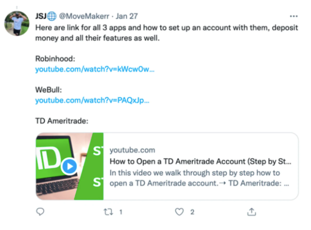 In the first tweet, the thread is set up, and the last tweet links out to YouTube reviews that contain affiliate links.