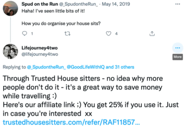 If you look at the example below, you’ll see some of the tips in action. Notice how there are no direct affiliate links. Instead, the tweet serves as a showcase for what the user can expect from the (affiliate) content so they will click on it.