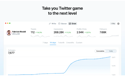 Typefully allows you to easily write, schedule, and publish tweets and threads. That includes engagement rates, follower growth, timing, top hashtags, and more. With Typefully, you can find out what your competitors are doing right and match their strategy to help drive your follower growth!