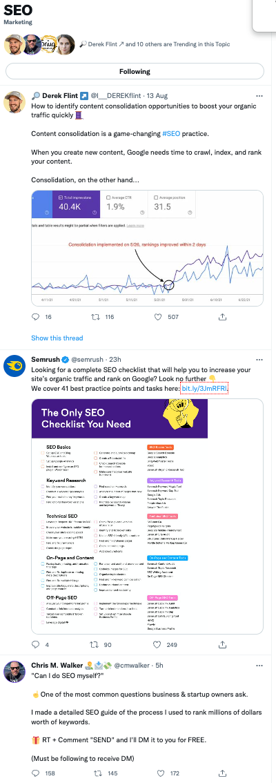 For example, here are the top trending Tweets in SEO: