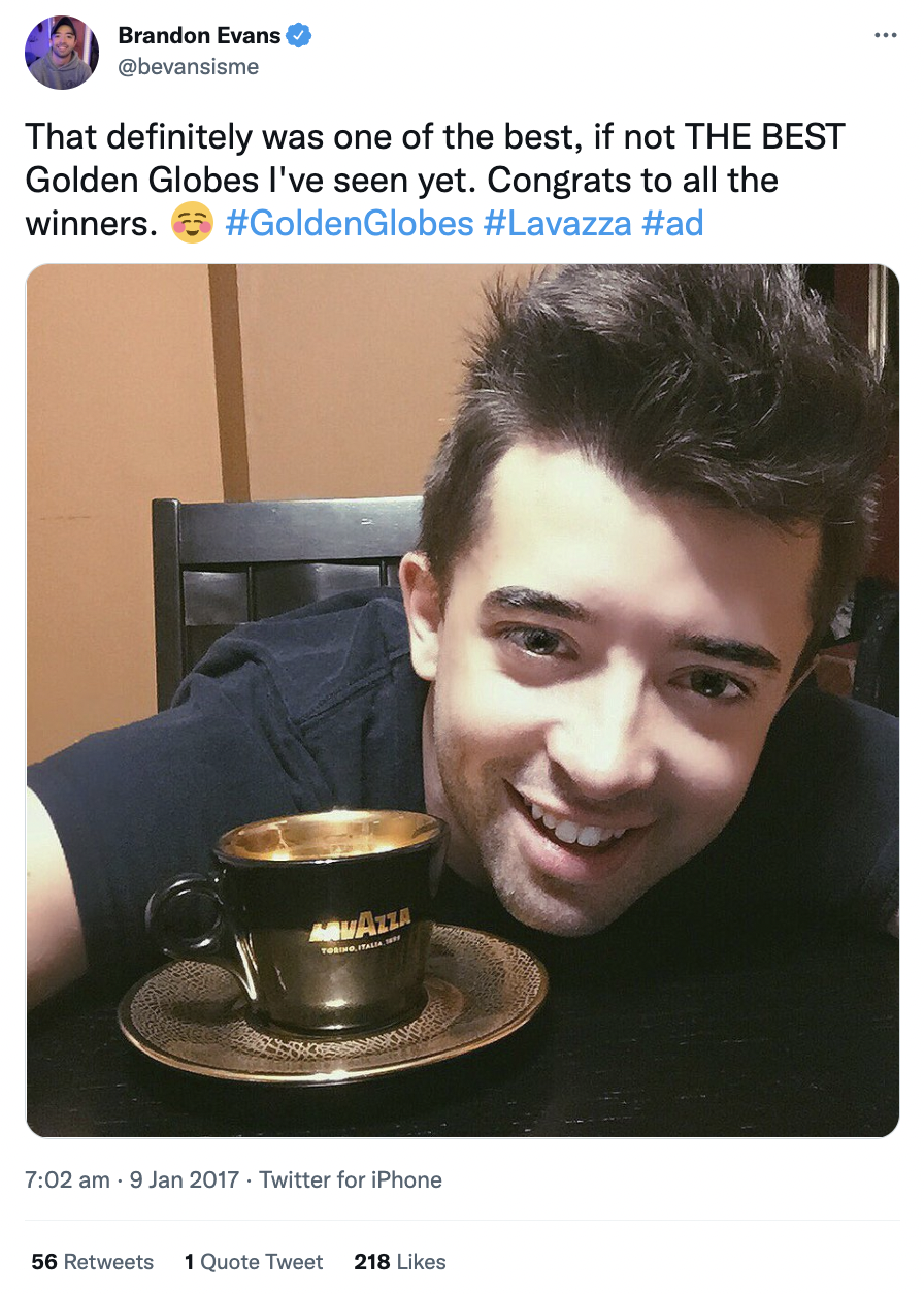 To help generate buzz for its premium coffee products, Lavazza partnered with several microbloggers during their live blogging of the Golden Globes. The results were over 3,000 likes for Lavazza’s Twitter account.