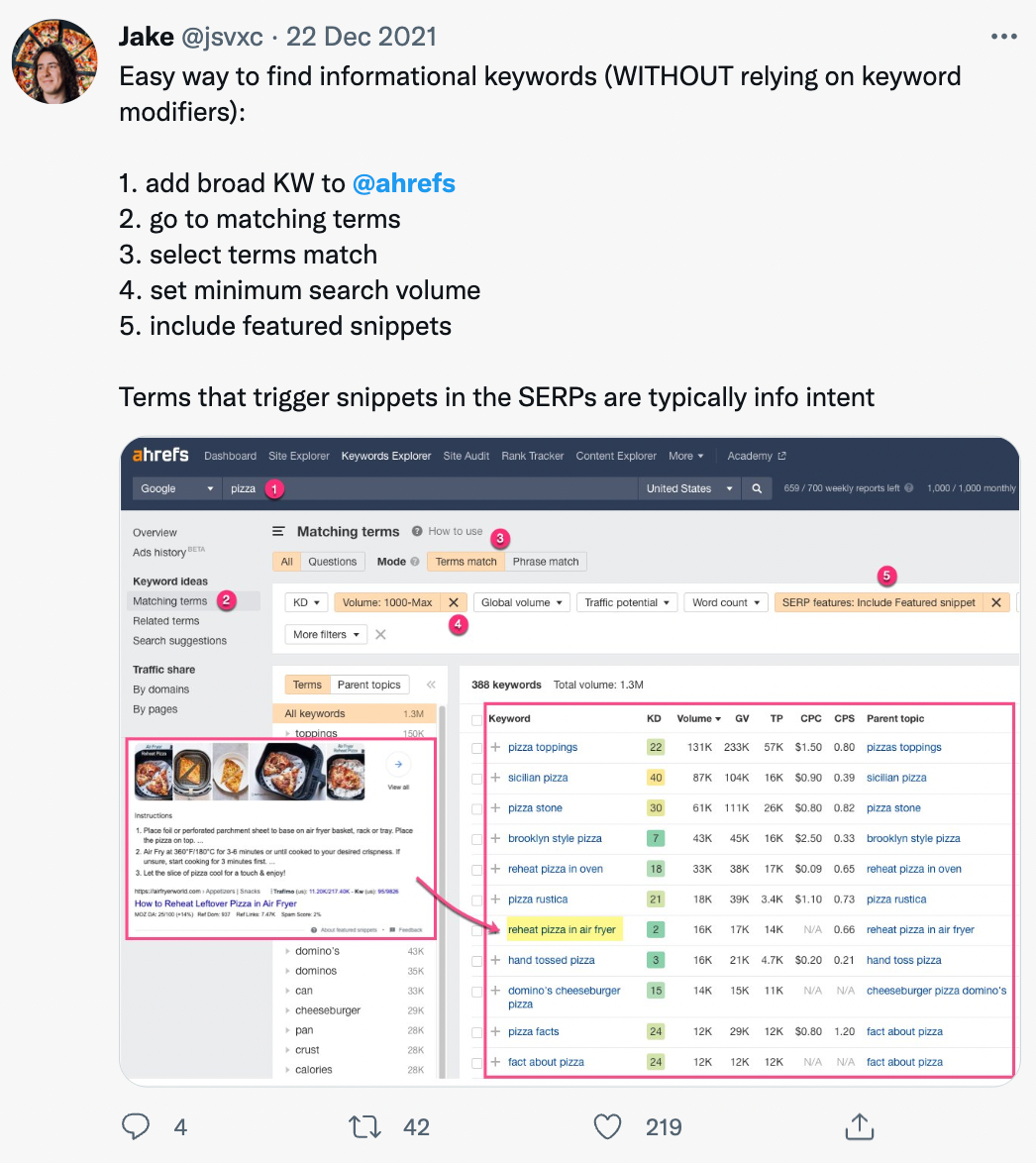 For instance, Ahrefs is a search engine optimization platform used by tens of thousands of professionals from all over the world. As the platform is fairly expensive, influencers regularly tweet about mini tutorials on how to use the tool to its fullest potential. Here’s one: