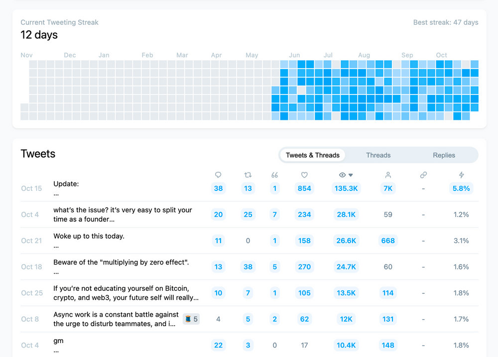 Finally, you will want to make sure that you track the performance of the influencer campaign. As stated in the previous point, you can give the influencer a promo code which can help you see how well the campaign is doing. If you’re posting from your account, you can use Typefully to check how key tweets with the influencer have been performing