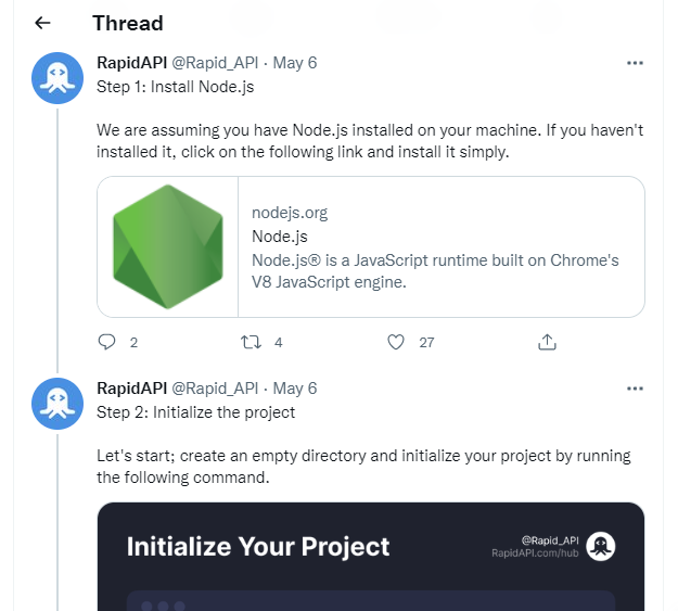 Twitter threads are helpful when you have a list of things to share or steps you want your readers to follow: