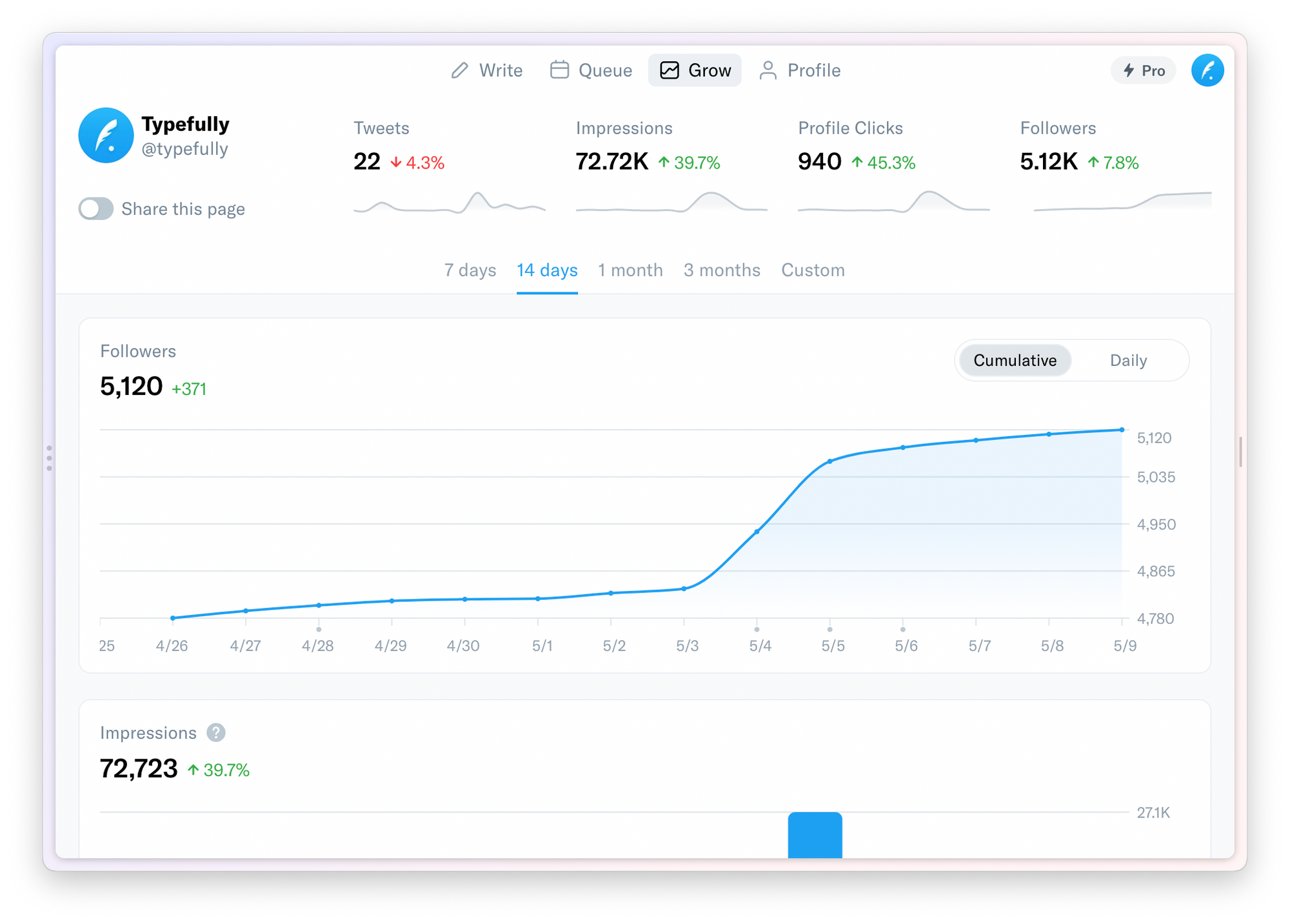 At Typefully, we're interested in helping you grow your online brand as quickly as possible. That's why we've developed tools and resources to improve your following on Twitter.