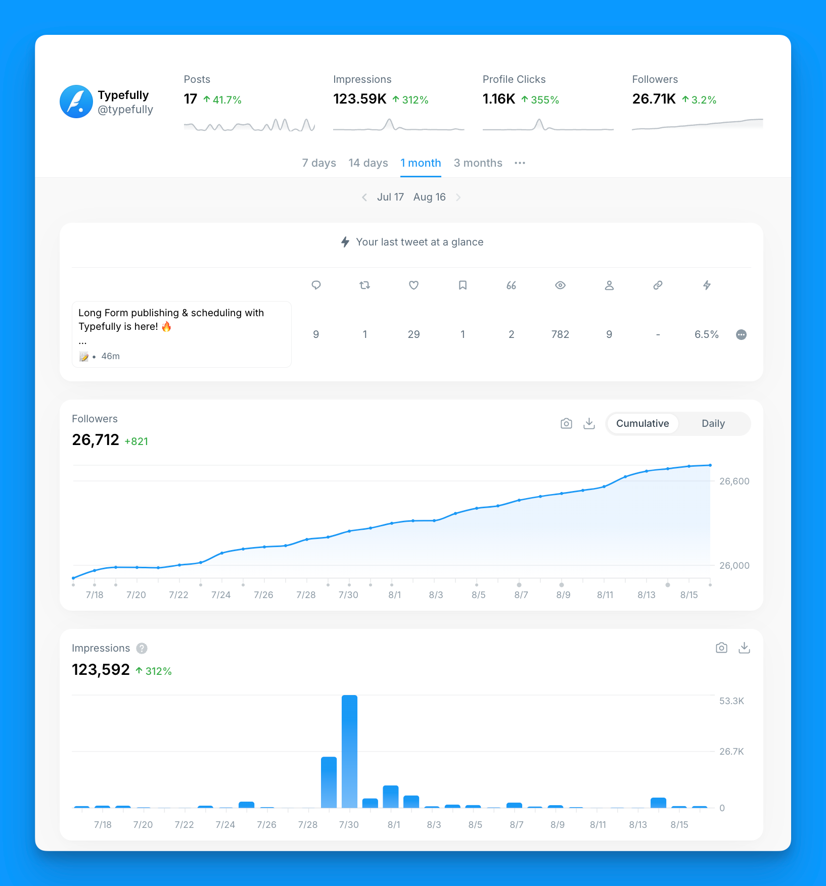 Rather than managing complex workflows, Typefully helps you focus on what matters: creating authentic, engaging content that grows your audience.