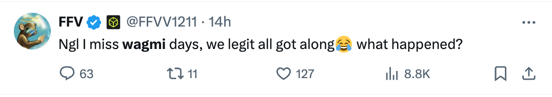 wagmi: we are gonna make it; almost a slogan at this point and often used as a motivational phrase